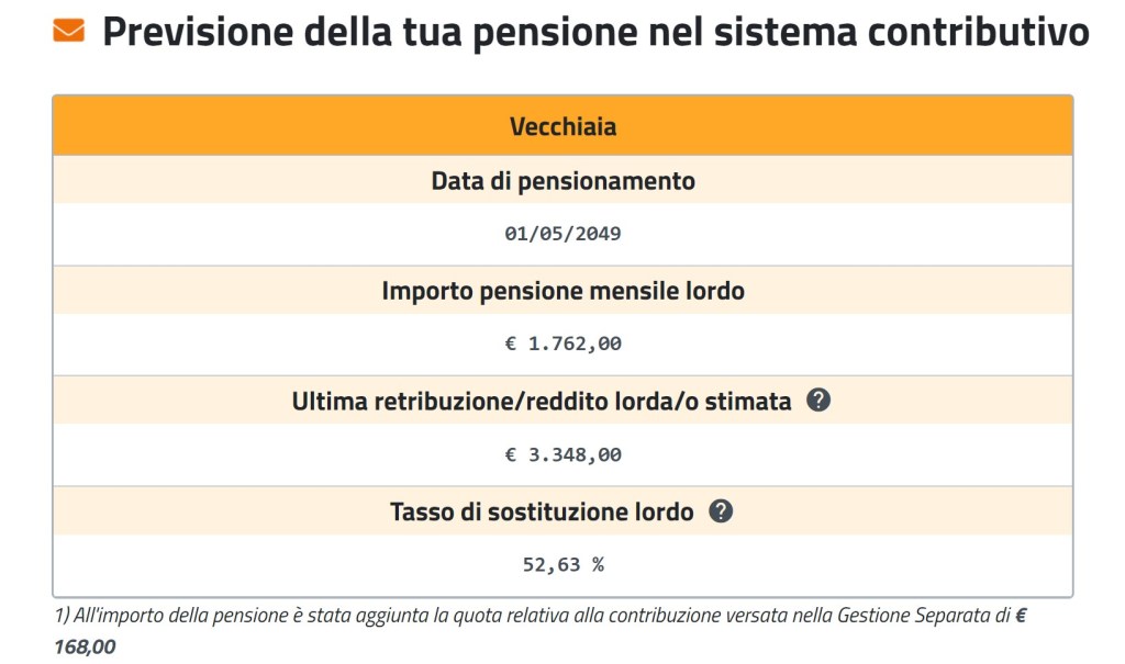 In foto una simulazione reale fatta a giugno 2024, quindi con le ultime novità in ambito pensionistico.
